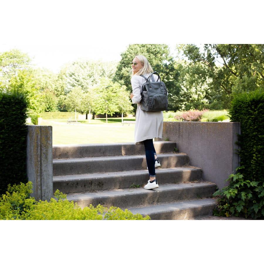 Plecak Riga jest niezwykle wytrzymały, stylowy i bardzo praktyczny. Ze względu na dużą ilość miejsca i wiele mniejszych przedziałów jest wystarczająco dużo miejsca na wszystkie artykuły pielęgnacyjne dla dzieci. Wewnątrz głównej przegrody znajduje się siedem poręcznych mniejszych przegródek, dodatkowa przegroda z zamkiem błyskawicznym oraz mata do przewijania. Główna komora posiada dwustronny zamek błyskawiczny. Kiedy go otwierasz, pozostaje otwarty z powodu specjalnego zamknięcia. Dodatkowo z przodu i z boku znajdują się dwie przegrody. Dwa paski z tyłu gwarantują komfort noszenia. Dzięki dwóm paskom plecak można łatwo przymocować do wózka. Krótko mówiąc, idealny plecak na akcesoria do przewijania.