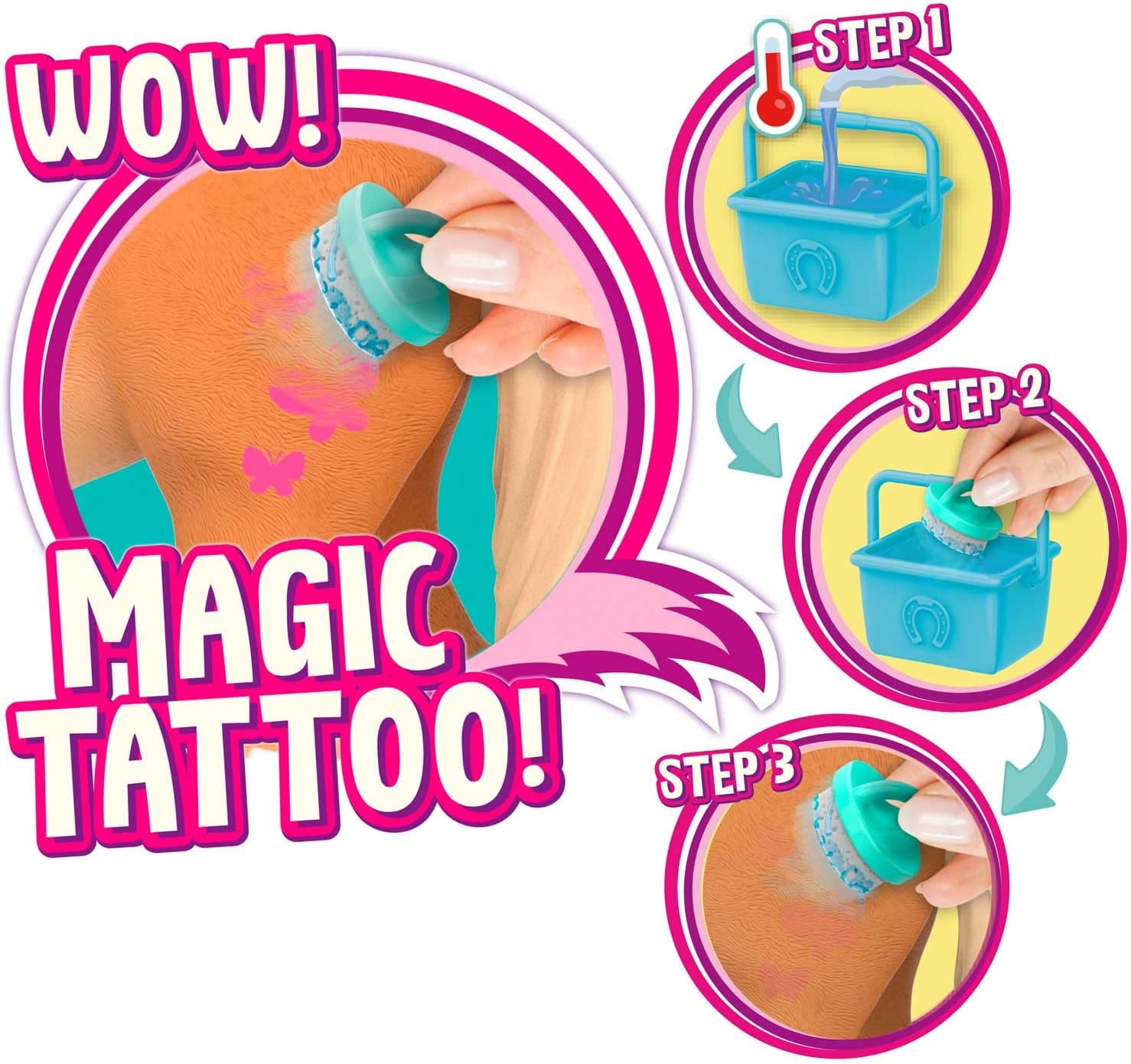 Za pomocą dołączonego specjalnego grzebienia i wody możesz aktywować tatuaże koni i obserwować, jak zmieniają się w ich wyglądzie