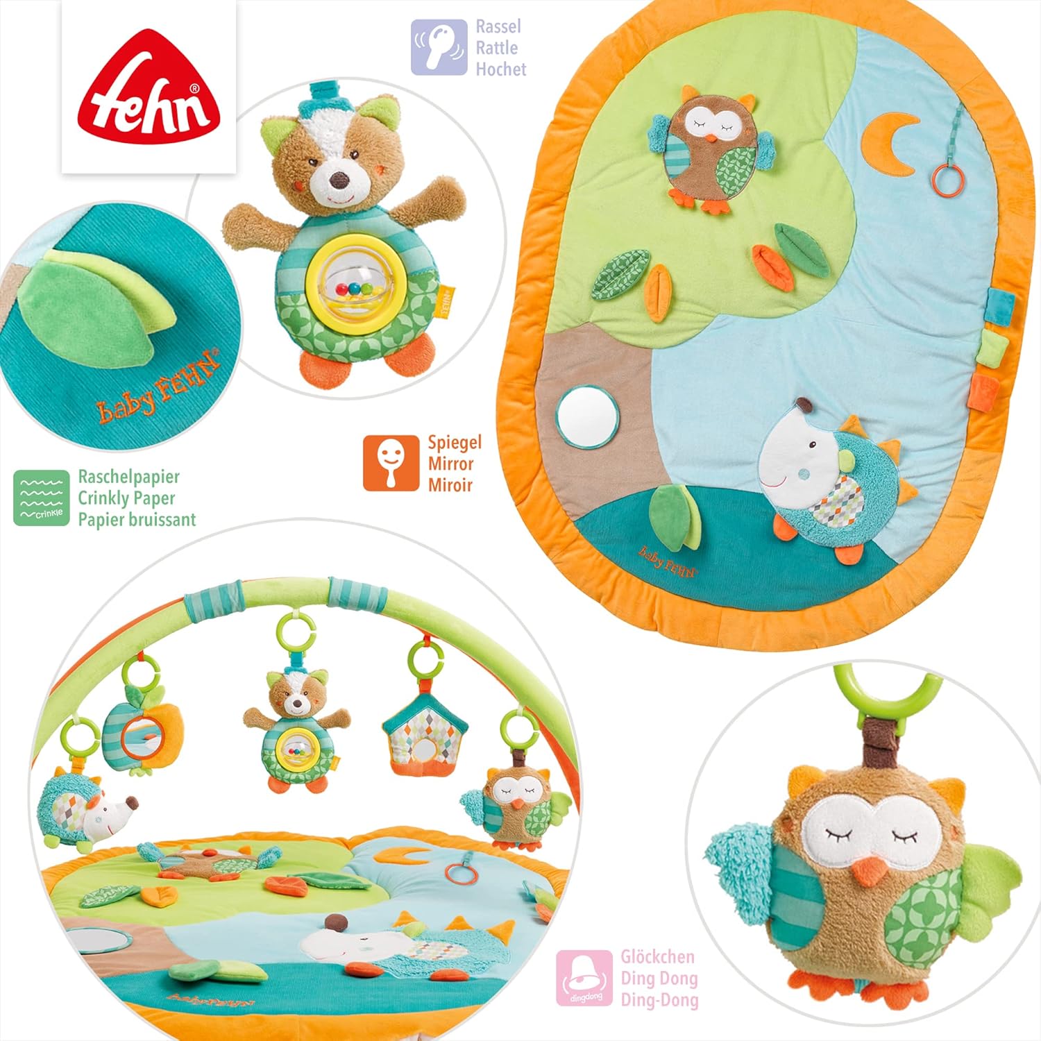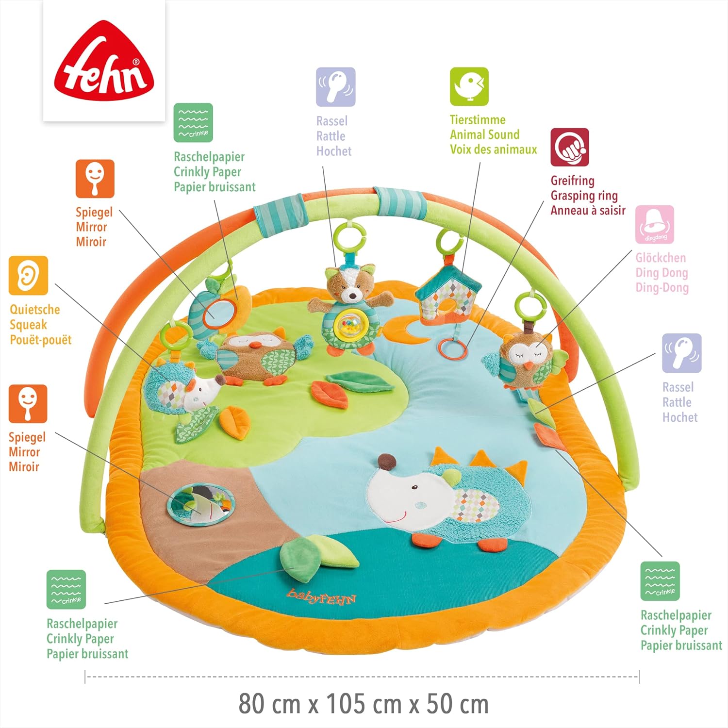 To idealny pierwszy plac zabaw dla maluchów. Wraz z barwnym domkiem, popiskującym przy potrząsaniu, uśmiechniętym misiem pełniącym rolę grzechotki, oraz małym pluszowym jeżem wydającym delikatny dźwięk pod paluszkami dziecka i bezpiecznym lusterkiem- jabłuszkiem do przeglądania, zabiorą twoje dziecko na wielkie przygody i ekscytujące wyprawy do krainy snów. Duże lusterko jest absolutną atrakcją maty. Twoje dziecko nieświadomie obserwuje relacje między przyczyną i skutkiem. Trójwymiarowa mata aktywacyjna może być używana jako płaski plac zabaw lub jako przytulne gniazdko. Miękkie materiały zapewniają bezpieczeństwo i optymalny komfort dziecka od samego początku.
