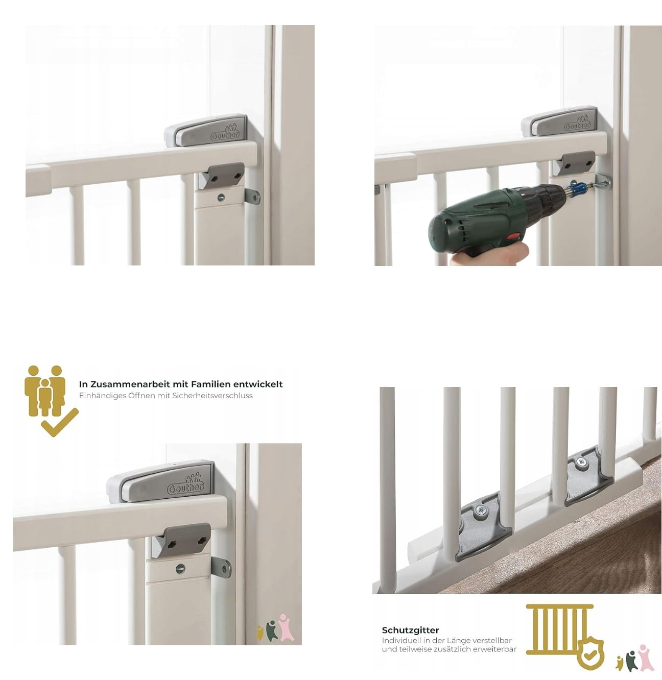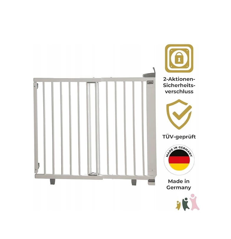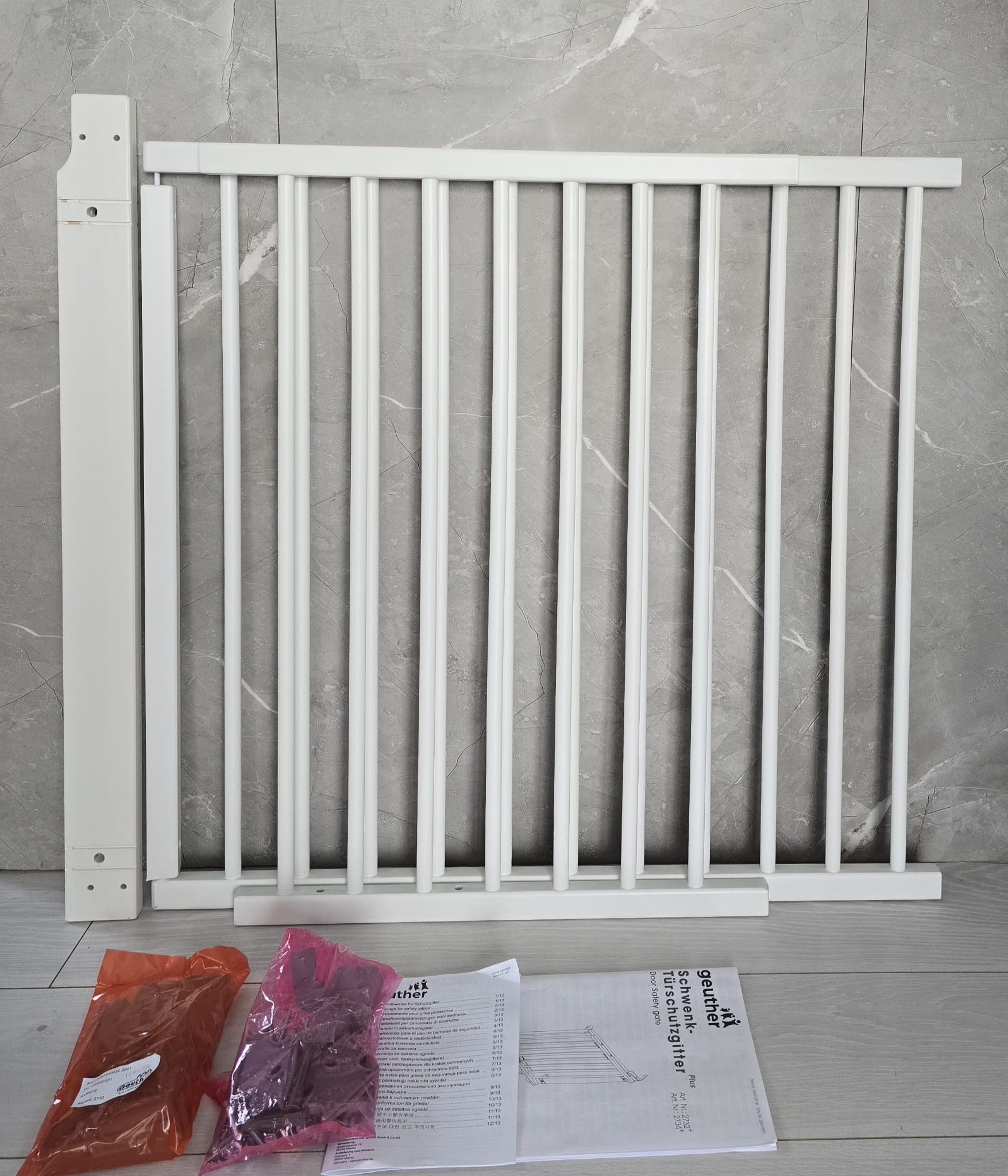 Geuther 2734 + bramka zabezpieczająca drewniana biała 93,5-133 cm