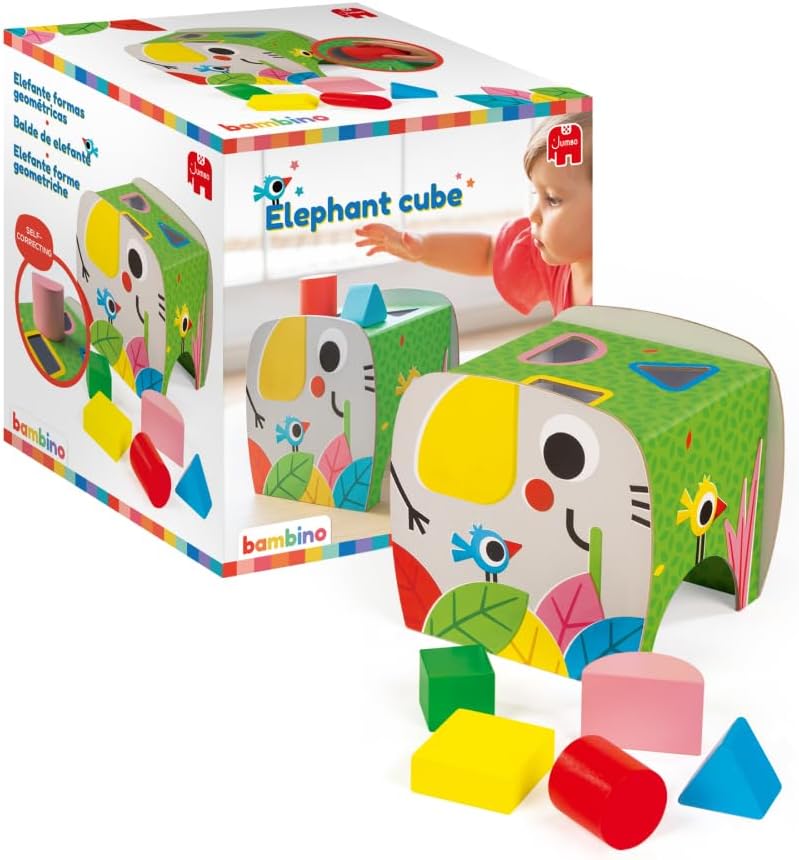 Gra edukacyjna sorter kształtu słonia , który pomaga rozwijać umiejętności motoryczne, poprawia koordynację ręka-oko i zachęca do rozpoznawania kształtów.