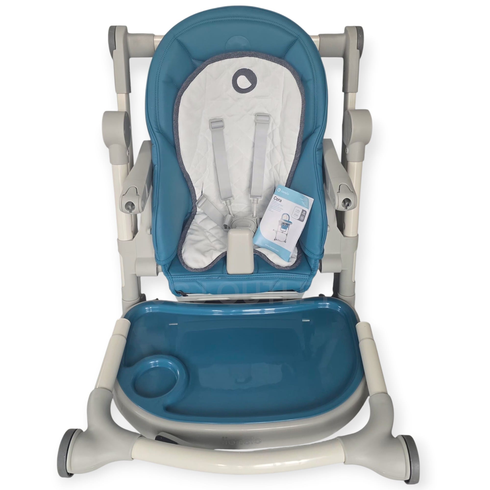 Krzesełko Cora posiada 4-stopniową regulację wysokości, dzięki czemu krzesełko zostanie z nami na dłuższy czas. Ma również 3-stopniową regulację pochylenia oparcia oraz podnóżka. Dzięki tym wszystkim funkcjom z krzesełka mogą korzystać dzieci o różnej budowie ciała. Dzieci czują się komfortowo, ponieważ zestaw zawiera mięciutką wkładkę a 5-punktowe pasy bezpieczeństwa jeszcze bardziej zwiększają ochronę dziecka przed wypadnięciem z krzesełka.