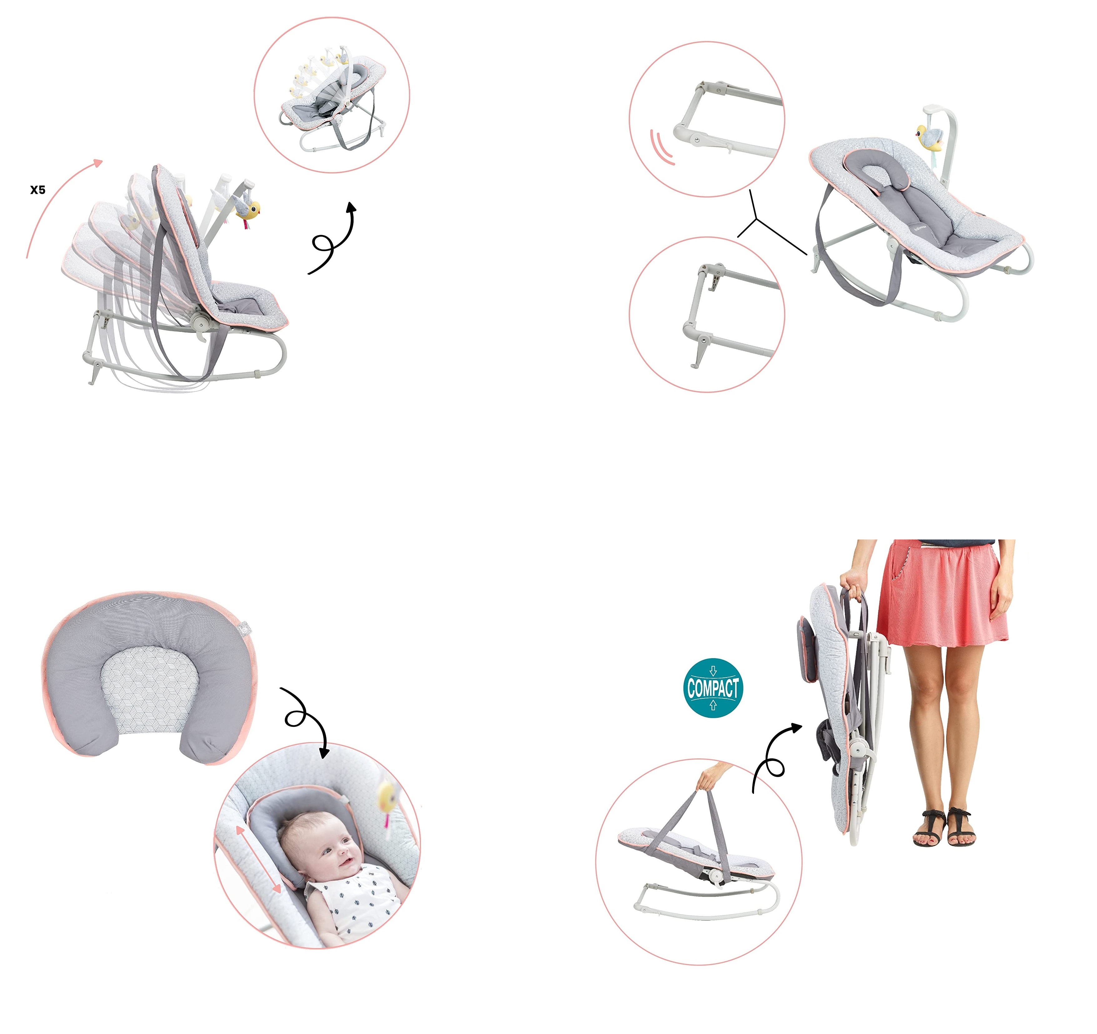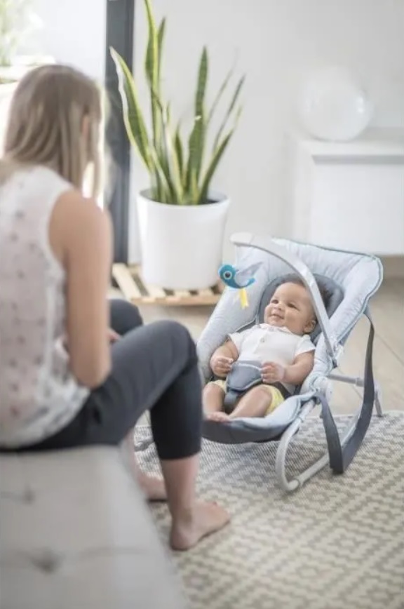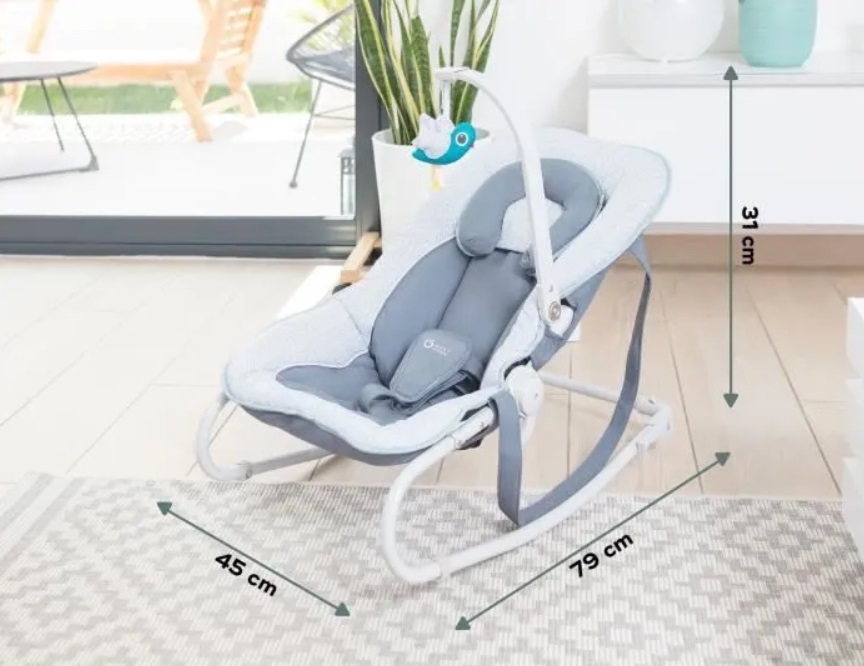 - Wygodny leżaczek dla dziecka z regulowanym oparciem.
