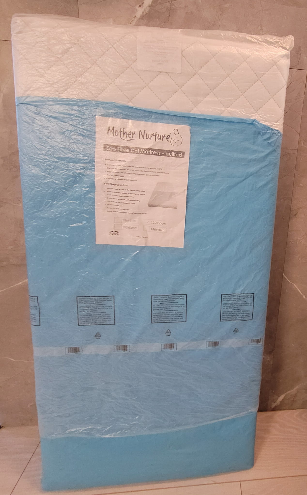 Materac do łóżeczka Mother Nurture Eco Fibre Cot Mattress – quilted 120x60cm