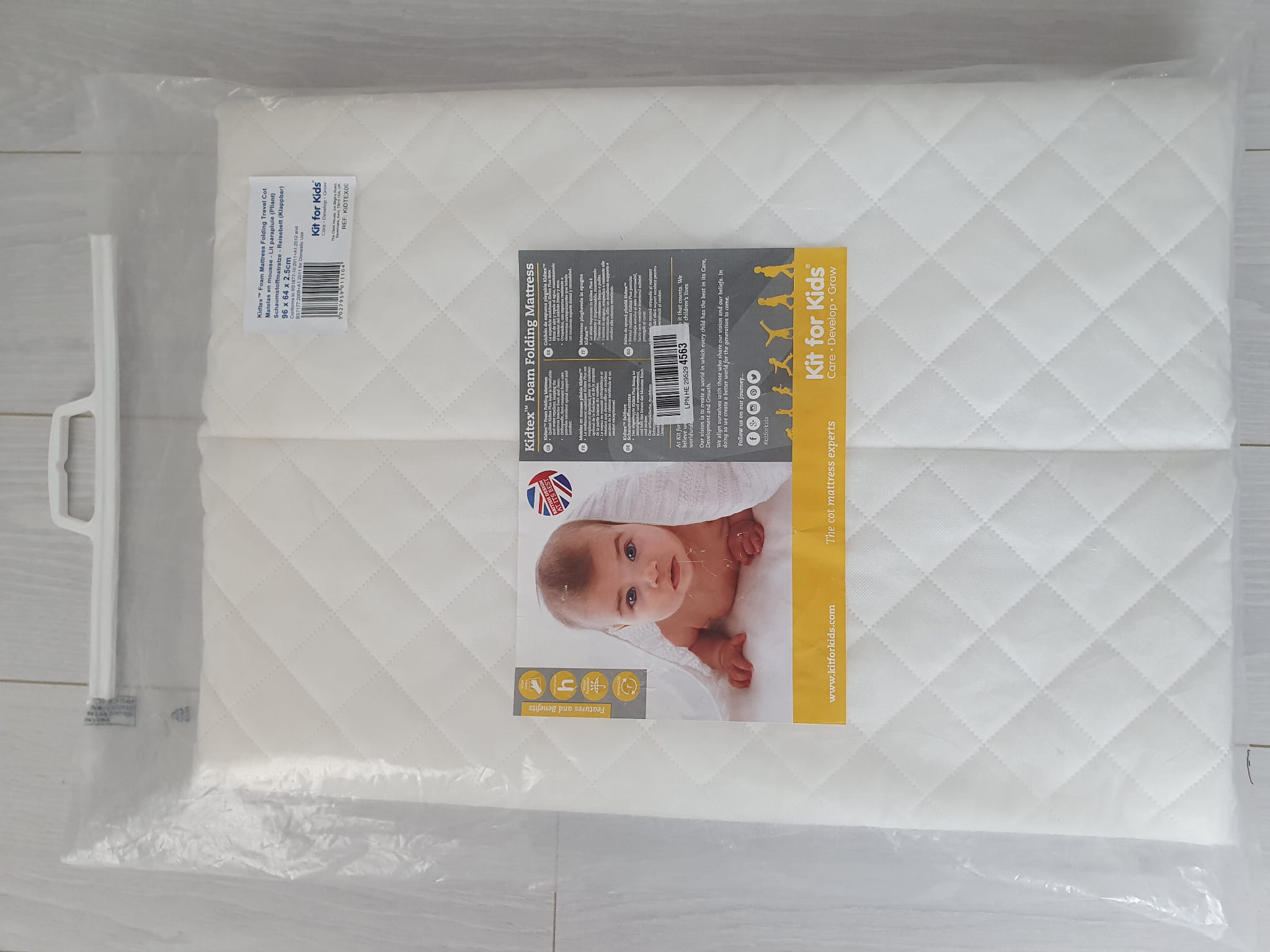 Piankowy materac podróżny Kidtex do łóżeczka podróżnego ma wymiary 96 cm na 64 cm i ma grubość 2,5 cm i pasuje do większości najlepszych marek, takich jak Graco Compact, Hauck, Mamas i Papas Classic, Mothercare classic. Pudełko zawiera