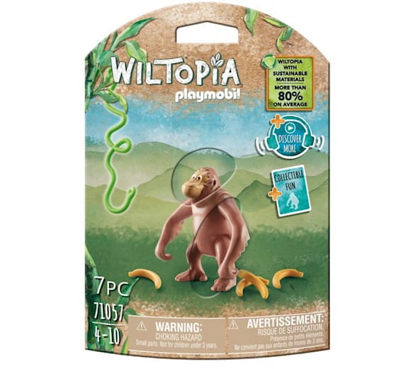 Huśtaj się i przemieszczaj z drzewa na drzewo z orangutanem. Korzystając z dołączonej karty kolekcjonerskiej ze zwierzętami z aplikacją Wiltopia, dzieci mogą dowiedzieć się wszystkiego o zwierzętach i ich siedliskach, a nawet zrobić sobie z nimi selfie, wyświetlając zwierzęta bezpośrednio w swoim domu za pomocą AR. Dzięki Wiltopia — przyjaznej dla środowiska linii produktów PLAYMOBIL, dzieci mogą wyruszać na wyprawę w tętniące życiem regiony na całym świecie, zachęcając do doceniania żyjącej tam przyrody i całej naszej planety. Baw się tym zestawem osobno lub połącz go z resztą motywu Wiltopia (nr 71048-71074, 71007-71012 - sprzedawany osobno), aby uzyskać jeszcze więcej dzikiej, zwierzęcej zabawy! Zestaw zawiera jednego orangutana, lianę oraz 4 banany i odpowiednią kartę zwierzęcia do odblokowania zawartości cyfrowej.