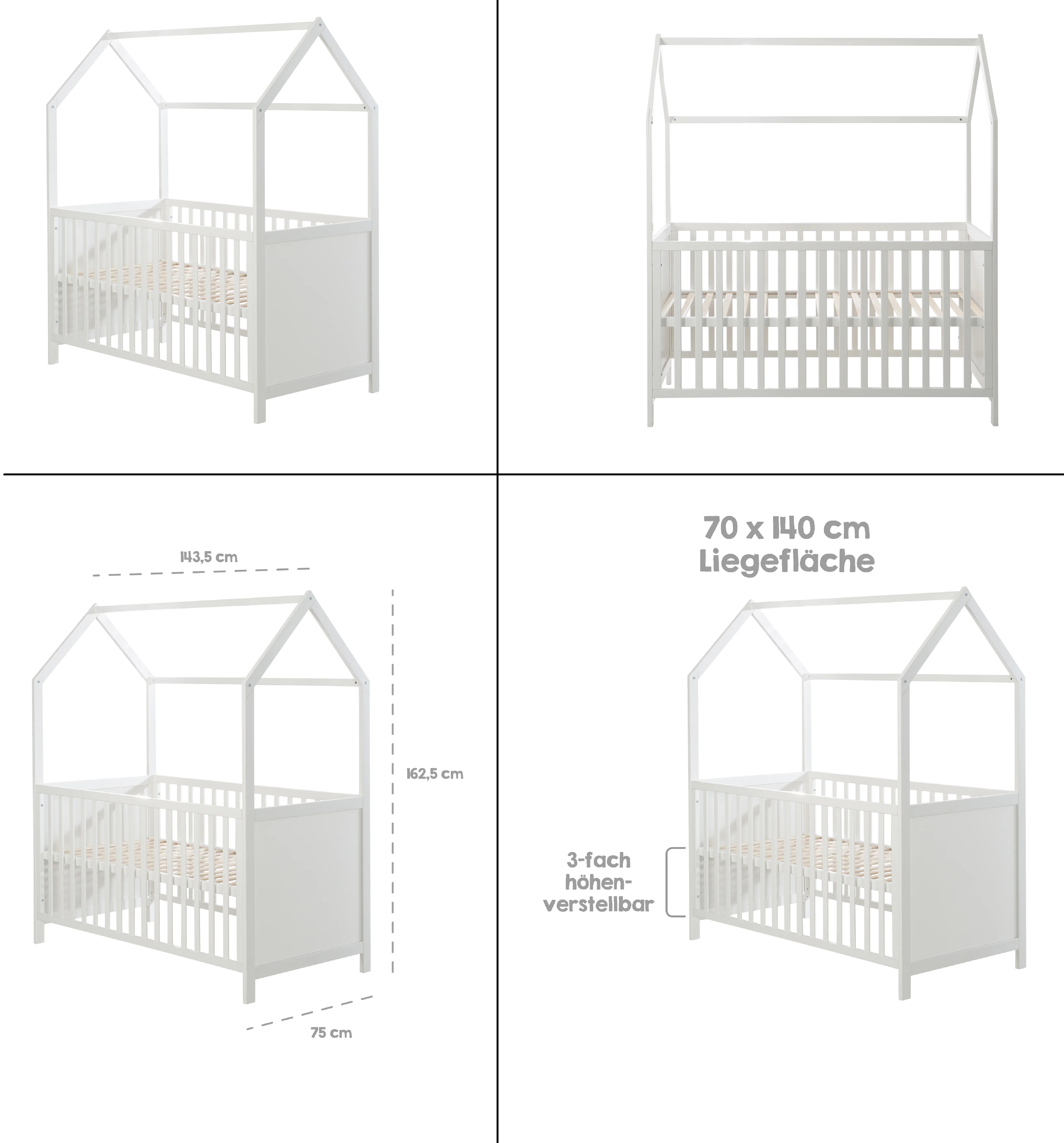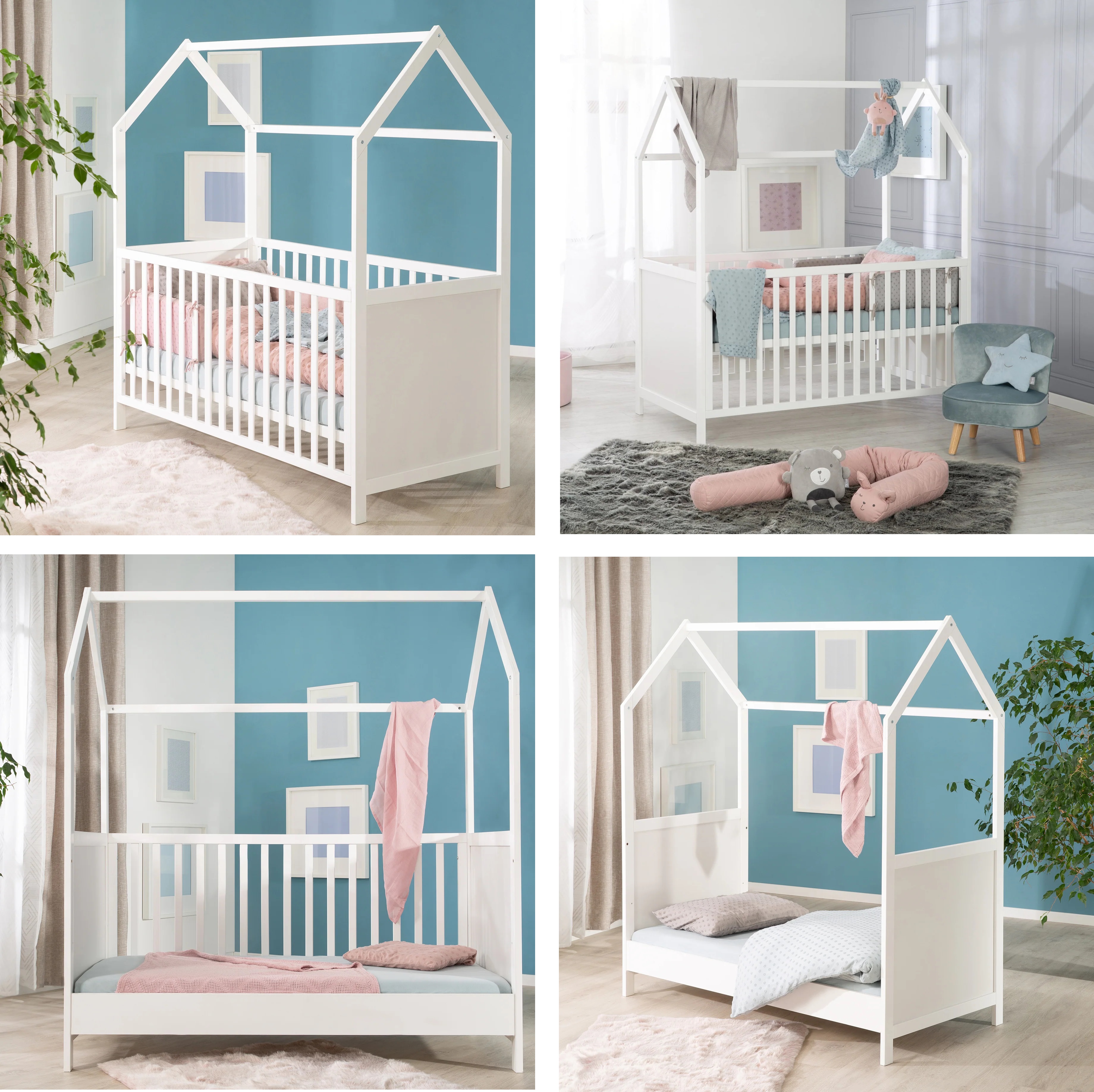 Łóżko Domek jest odpowiednie dla dzieci od urodzenia do około 8 roku życia. Za pomocą kilku prostych kroków łóżko dziecięce można później przekształcić w łóżko dla malucha lub przytulną sofę z oddzielnie dostępnymi bokami (nr art. 10011WE) , co zapewnia długotrwałe użytkowanie.