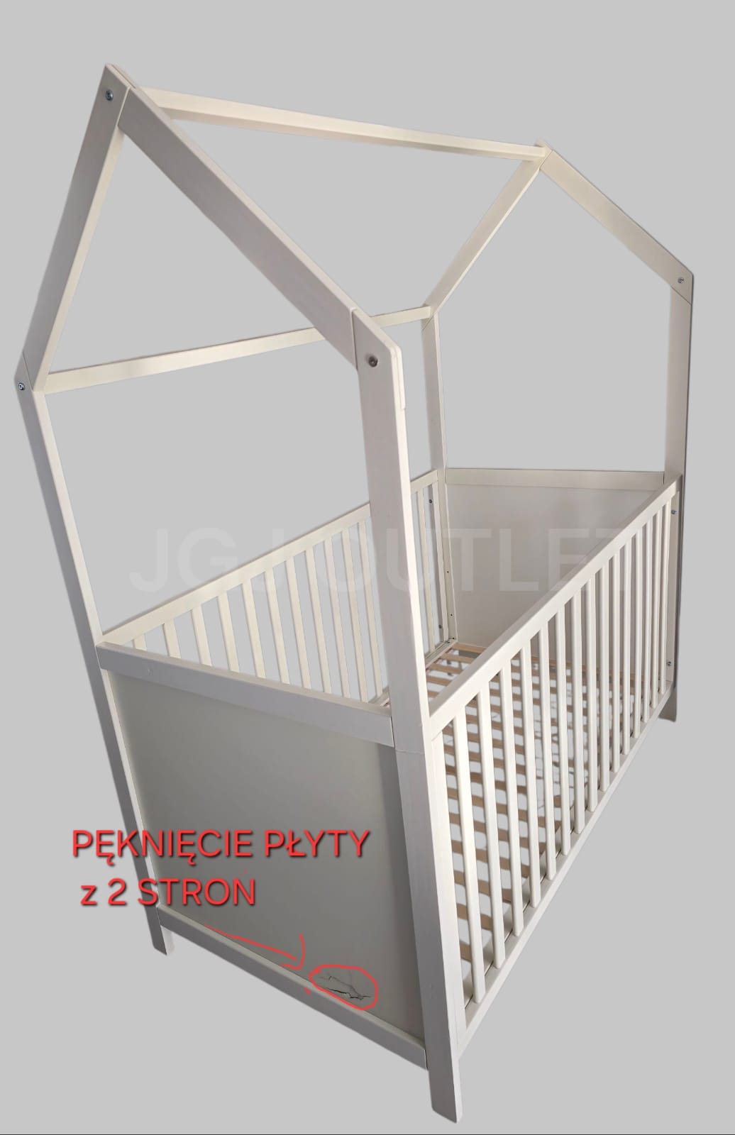 ŁÓŻECZKO ZŁOŻONE ABY PRZEDSTAWIĆ USZKODZENIA PO ZŁOŻENIU – PO WŁOŻENIU MATERACA I USTAWIENIU ŁÓŻECZKA PRZY ŚCIANIE NIE POWINNO BYĆ WIDOCZNE USZKODZENIE PŁYTY.