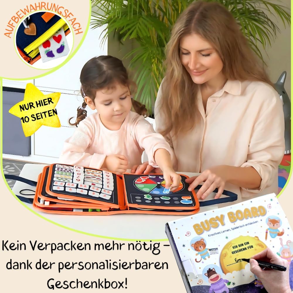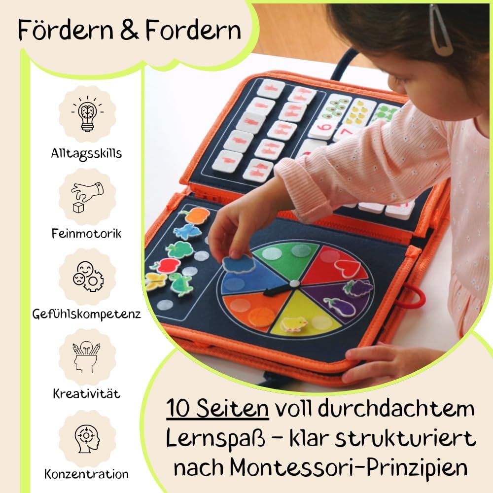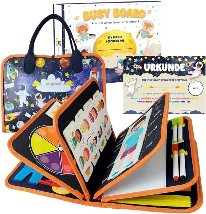 Poręczny kształt sprawia, że deska Busy Board jest idealnym towarzyszem podczas długich podróży samochodem lub podróży samolotem. Twoje dziecko może się zrelaksować podczas podróży.