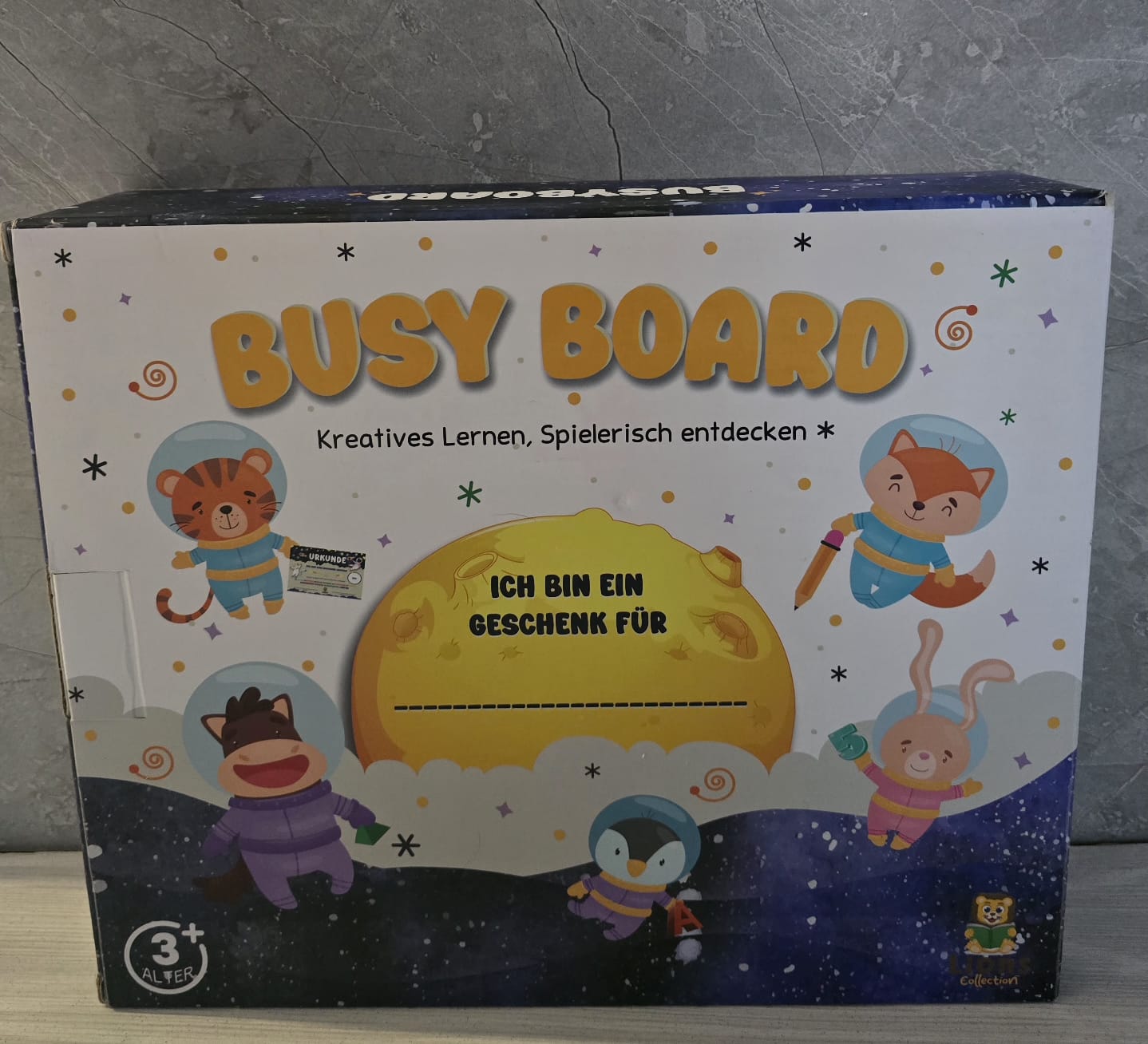 Busy Board (1/11.23) od marki Lions Collections to zabawka aktywizująca dla dzieci w wieku od 3 lat.