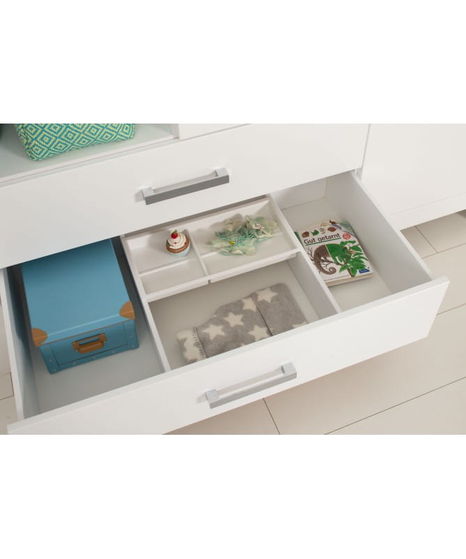 Utrzymanie porządku w szafie czasami nie jest takie łatwe. Aby znacznie ułatwić Twojemu dziecku utrzymanie porządku, do szaf Paidi z szufladami dostępny jest ten praktyczny wkład do szuflady Paidi z półką na przybory.