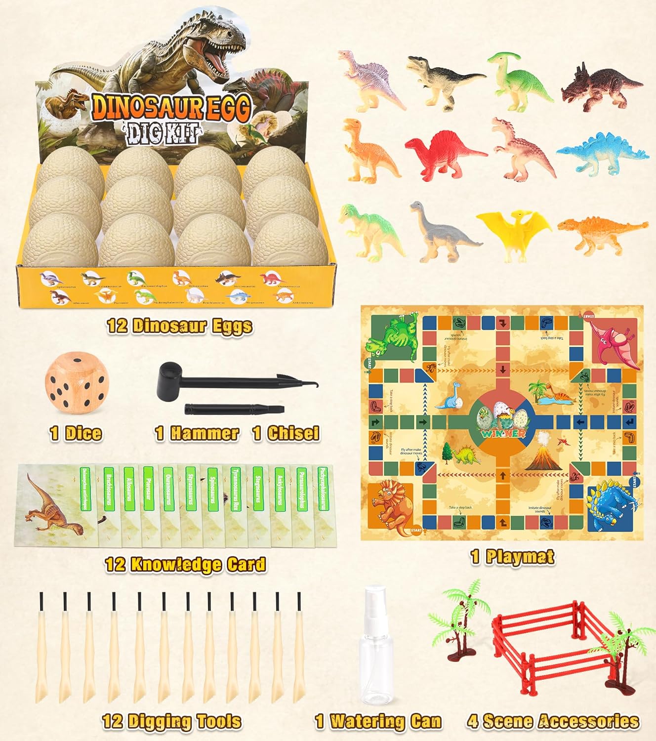 Zestaw kopalnia wykopaliska dinozaurów archeolog dinozaury + 12 jaje
